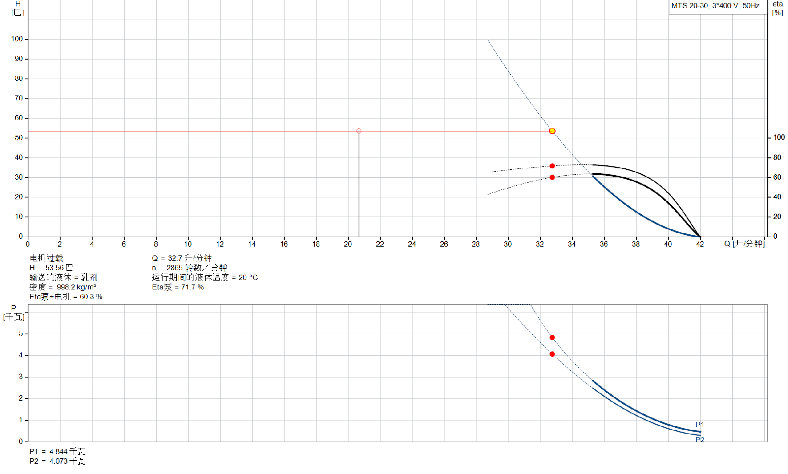 电机型号100LC额定功率——P23 千瓦泵所需功率(P2)2.4 千瓦电源频率50 Hz额定电压3 x 380-415D V额定电流6.3 安启动电流840-920 %Cos phi——功率因数0.87-0.82额定速度2900-2920 转数/分钟IE效率等级IE3电机满载效率87.1 %3/4负载时的电机效率88.0-87.0 %1/2负载时的电机效率87.7-85.4 %电机极数2封装等级(IEC 34-5)55 Dust/Jetting绝缘等级(IEC 85)F内置的电机保护PTC电机编号87273297其他